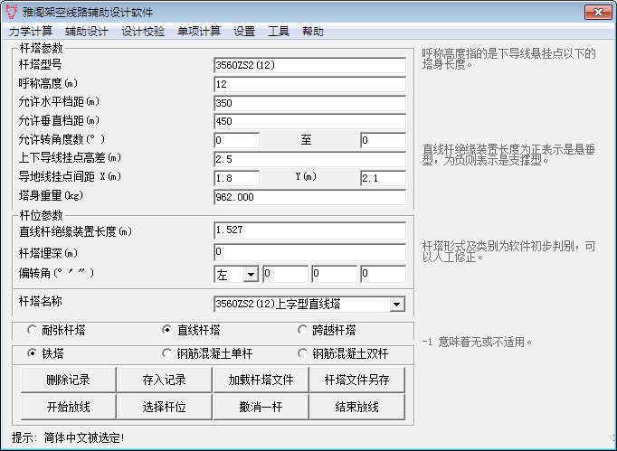 本软件可以根据外业数据,进行线路断面处理;根据气象条件、导线参数等,进行导线力学计算;根据计算结果,在 AutoCAD 内实现交互式辅助设计;根据设计结果,可以调整现有线路设计,可以调整杆塔型号、插入杆塔、移动杆塔、删除杆塔、截取线路等;根据设计结果,进行单项校验,并绘制校验曲线;根据设计结果,进行材料统计;根据设计结果,对平段面图进行分幅以达到出版要求。同时还有诸多其他的实用功能,总之,本软件是一款功能强大、适应面广的架空线路辅助设计的专业软件。